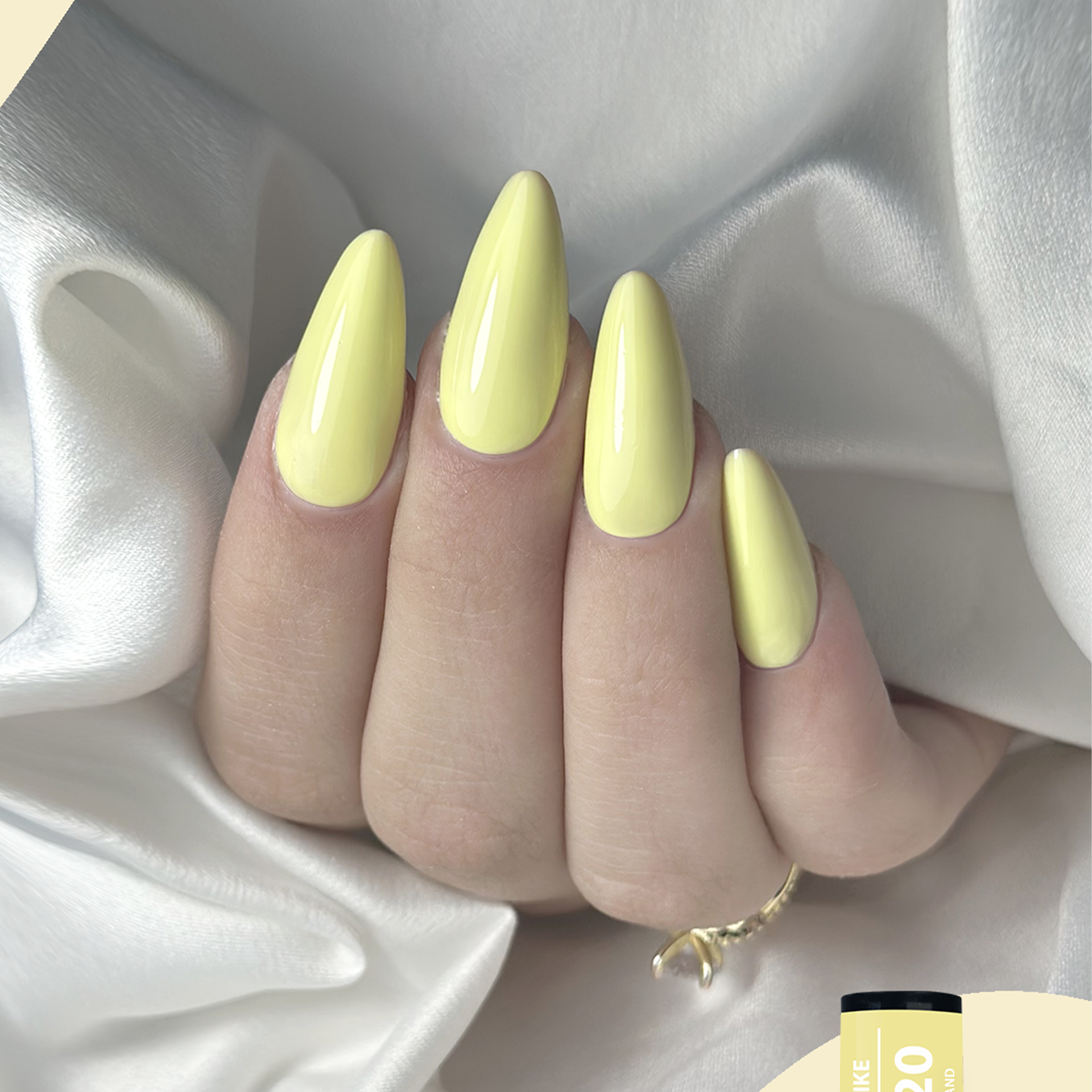 3º Passo: Aplique uma camada fina e esticada de verniz gel de cor e catalise em LED/UV, 60/120 segundos respetivamente. Aplique uma segunda camada fina e esticada de verniz gel e catalise em LED/UV em 60/120 segundos respetivamente.