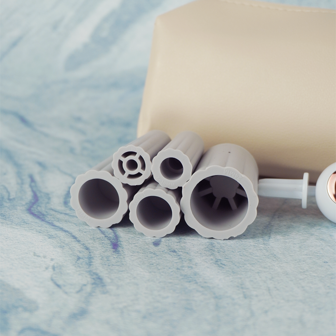 Acompanha 5 adaptadores compatíveis com diferentes tipos e tamanhos de frascos, tornando-o universal e adaptável a vários produtos.