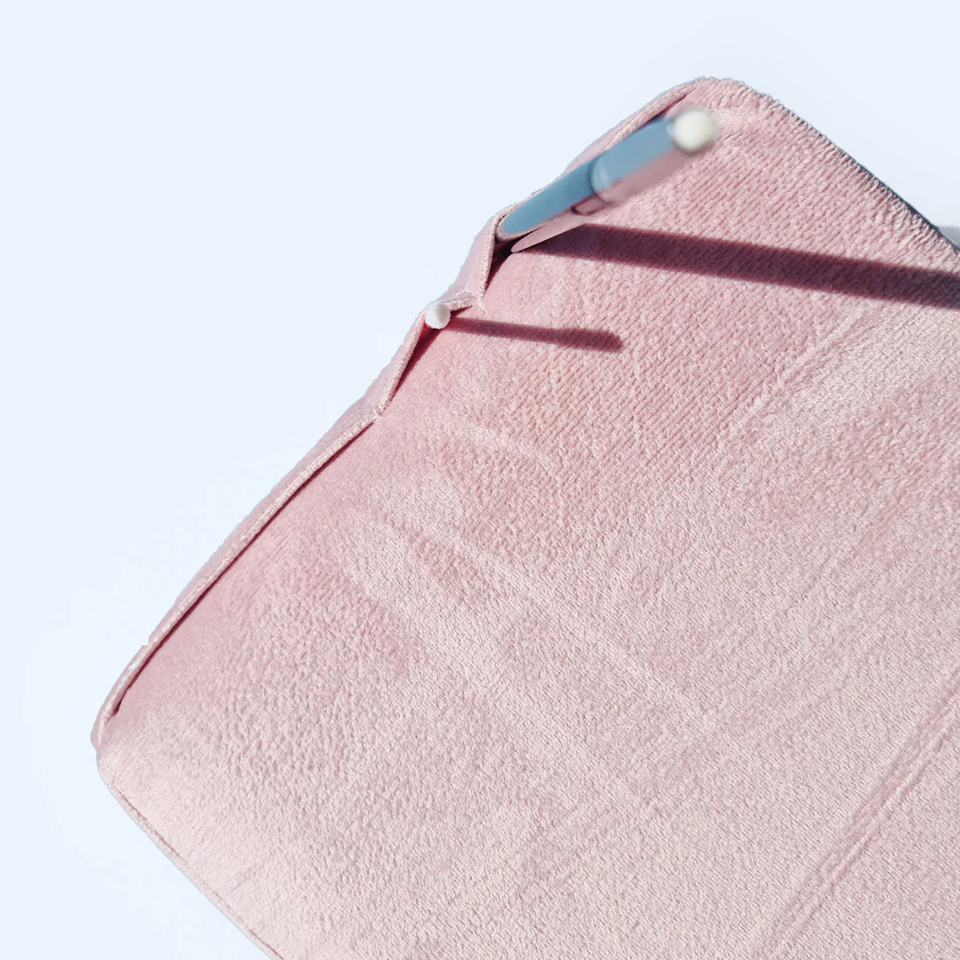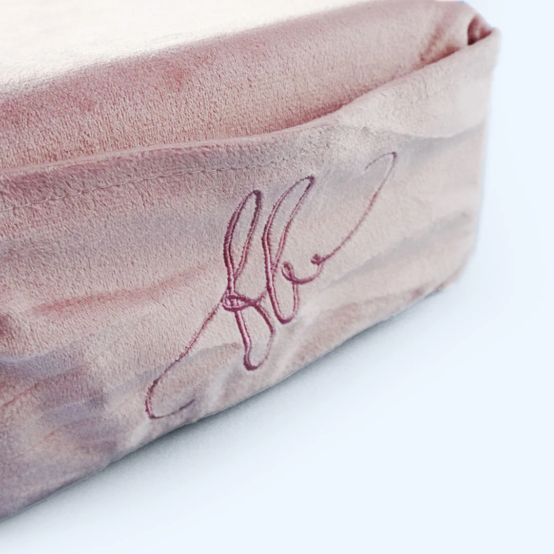 Com um design elegante em tecido rosa e o logótipo "FB" bordado, esta almofada alia funcionalidade e sofisticação, tornando-se um complemento indispensável para qualquer marquesa ou cadeira de atendimento.
