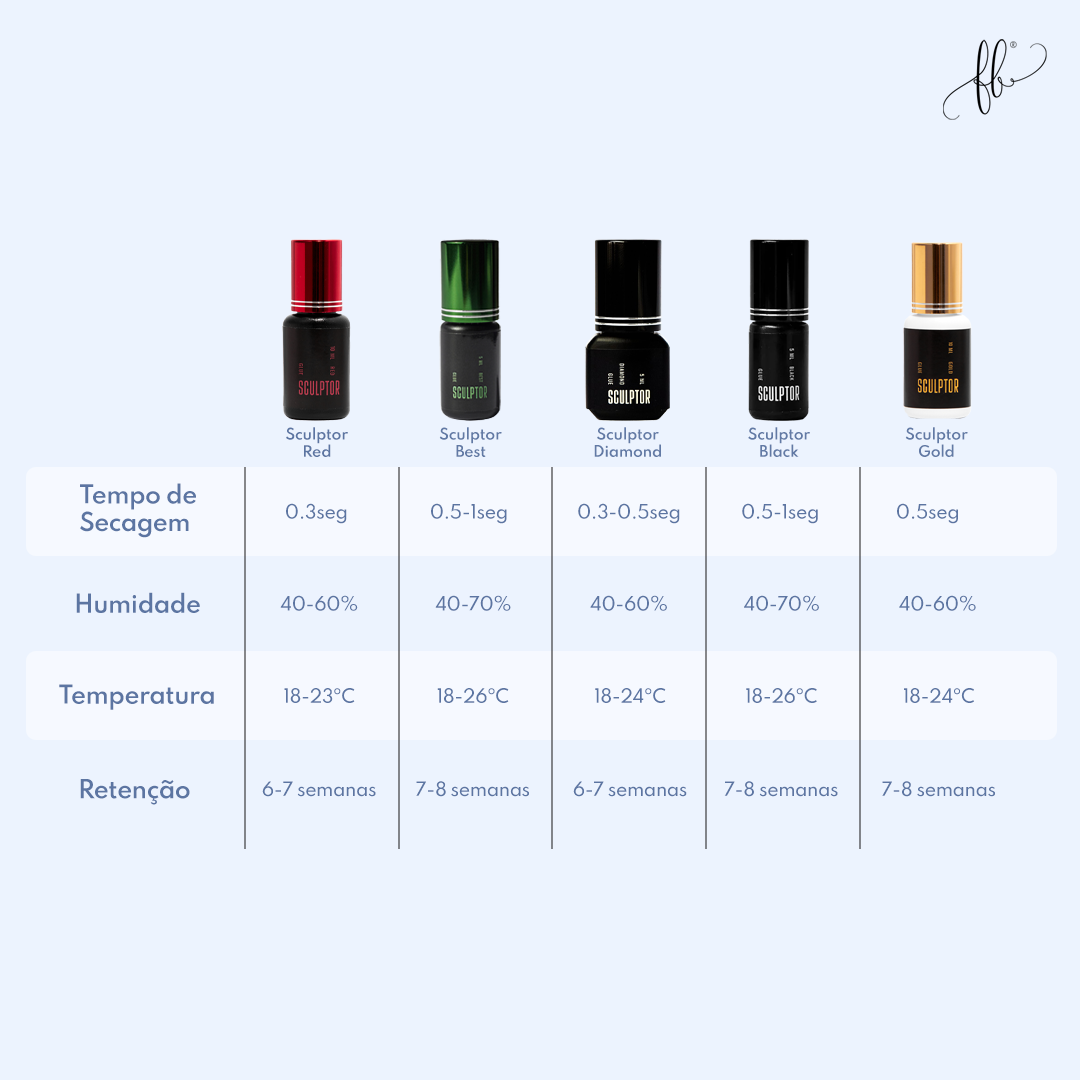 A Cola Sculptor Fusion foi desenvolvida para lash artists experientes que trabalham a um ritmo elevado e exigem uma cola rápida, estável e altamente fiável. Com um poder de ligação forte e uma cura rápida, permite executar serviços intensivos com segurança, controlo e fluidez, mesmo em contextos de elevado volume de clientes.