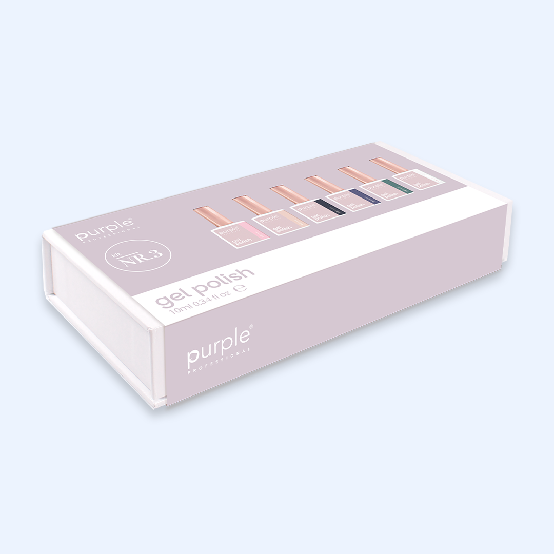 A Caixa Coleção Purple Nº3 reúne 6 vernizes gel de última geração, desenvolvidos para oferecer alta cobertura, cores intensas e acabamento brilhante, com uma durabilidade entre 4 a 6 semanas.