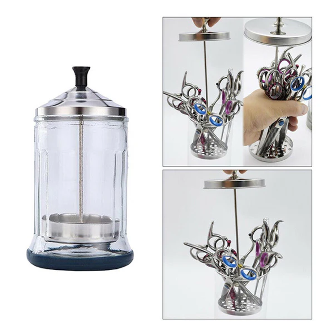 - Jarro de desinfeção com líquido Barbicide- Adequado para esterilizar pequenos acessórios com liquido esterilizador- Deverá submergir completamente os instrumentos no líquido por pelo menos 10 minutos- Capacidade: 621ml