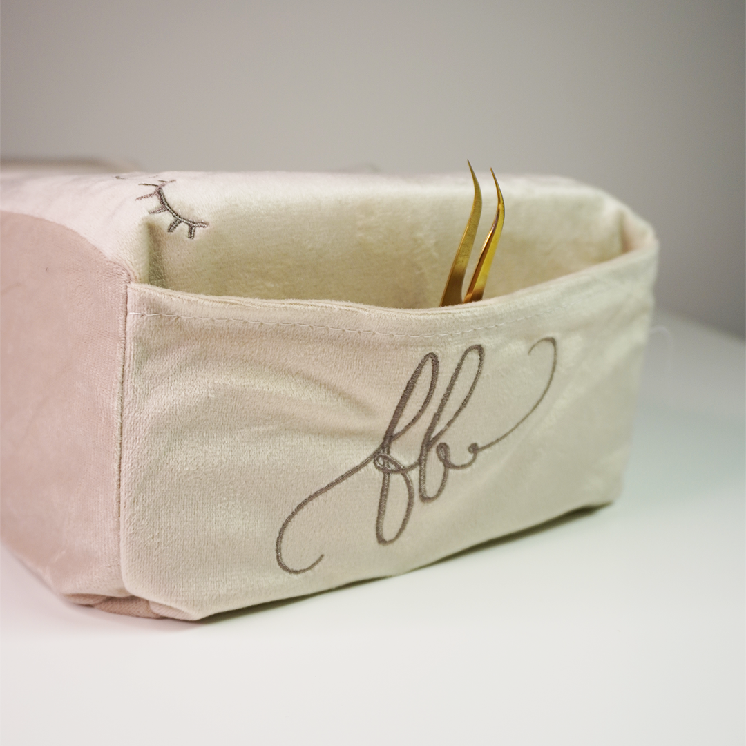 Com um design elegante em tecido pérola e o logótipo "FB" bordado, esta almofada alia funcionalidade e sofisticação, tornando-se um complemento indispensável para qualquer marquesa ou cadeira de atendimento.